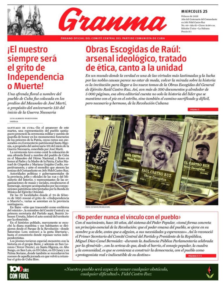 La periodista Katiuska Blanco, autora de varios libros sobre la vida del Comandante en Jefe Fidel Castro y corresponsal de guerra, transmitió el agradecimiento de los homenajeados a las FAR por conferirles el legado simbólico del Generalísimo, lo cual reafirma el compromiso de patria y Revolución en estos tiempos.