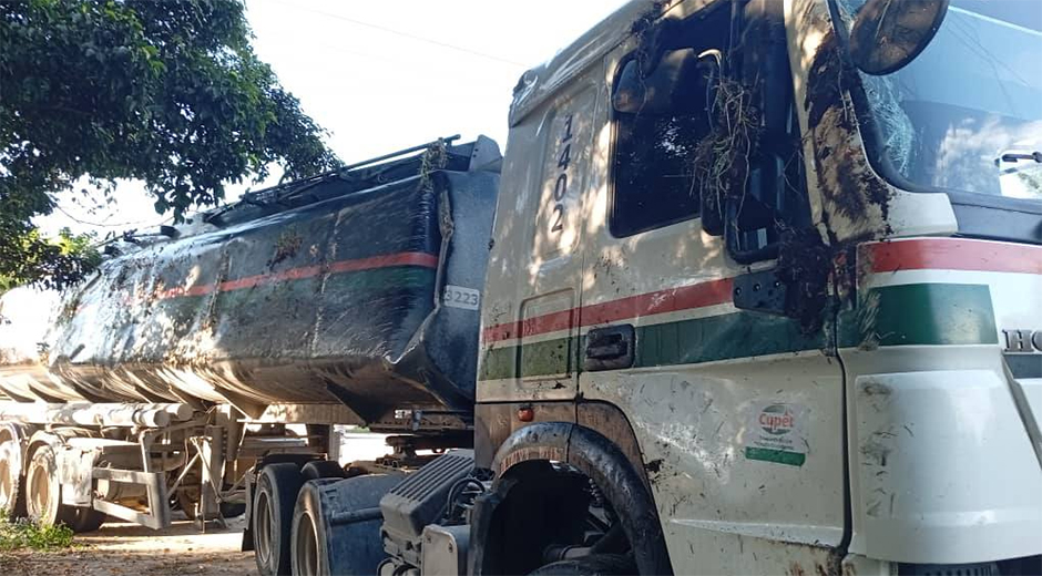 En el semirremolque cisterna se transportaban alrededor de 31 000 litros de petróleo crudo desde los pozos hacia la batería de Puerto Escondido. La volcadura provocó un derrame del producto en la Vía Blanca.