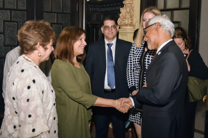 "Recibe Ana María Mari Machado @anamarianpp, vicepresidenta de @AsambleaCuba, a Jagan Chapagain @jagan_chapagain, director ejecutivo y secretario general de la Federación Internacional de Sociedades de la Cruz Roja y de la Media Luna Roja @ifrc; en el Capitolio Nacional".
