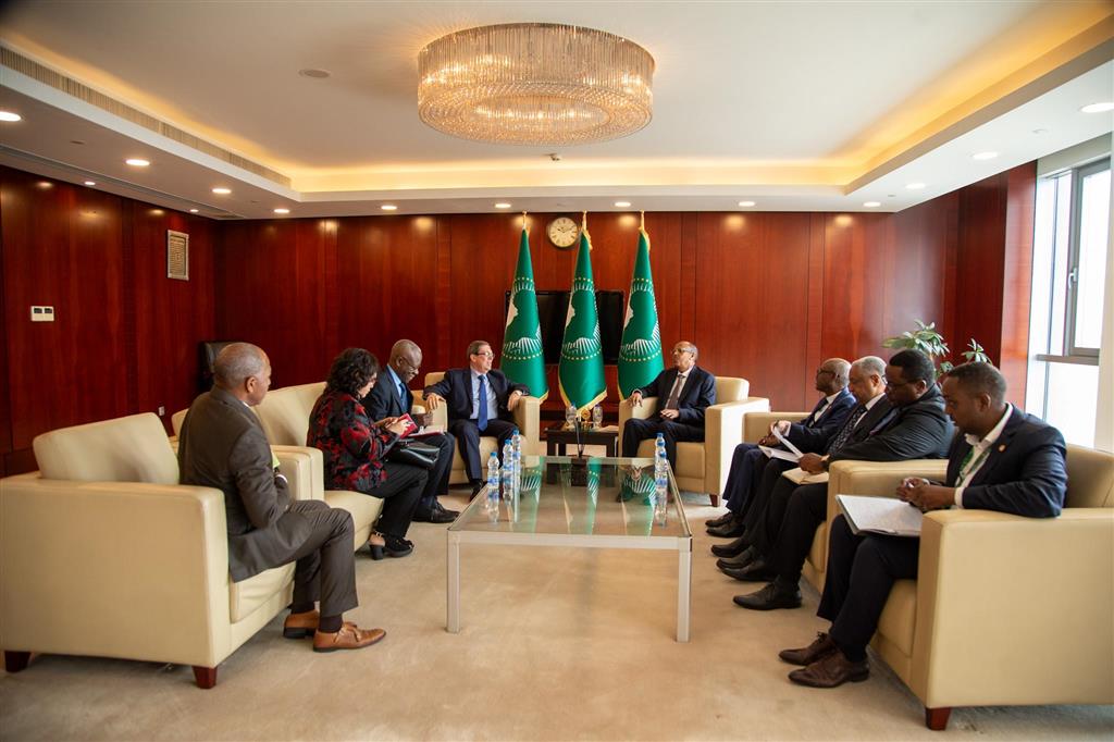 El presidente de la Comisión de la Unión Africana, Mahmoud Ali Youssouf, recibió hoy al ministro de Relaciones Exteriores de Cuba, Bruno Rodríguez, con quien abordó el interés mutuo por impulsar la cooperación multilateral.