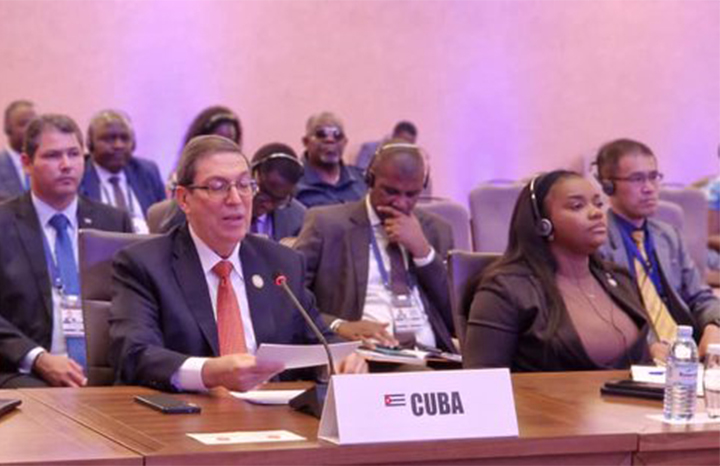 En su intervención, el ministro cubano señaló que Washington impone medidas coercitivas unilaterales contra naciones en desarrollo con fines de desestabilización y dominación, lo cual constituye una amenaza a la estabilidad internacional.
